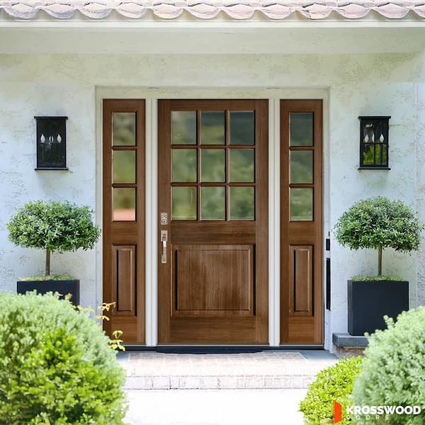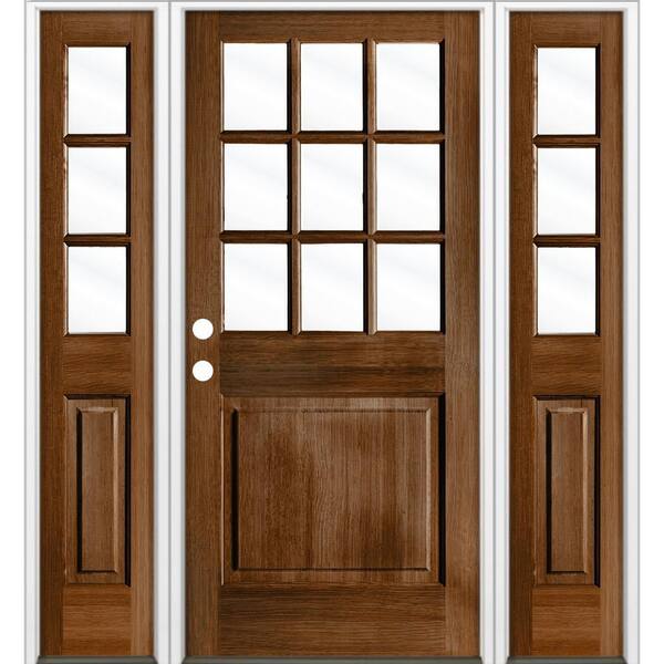 64 in. x 80 in. Farmhouse 9-Lite Clear Glass Right Hand Provincial Stain Hemlock Wood Prehung Front Door w/ DSL