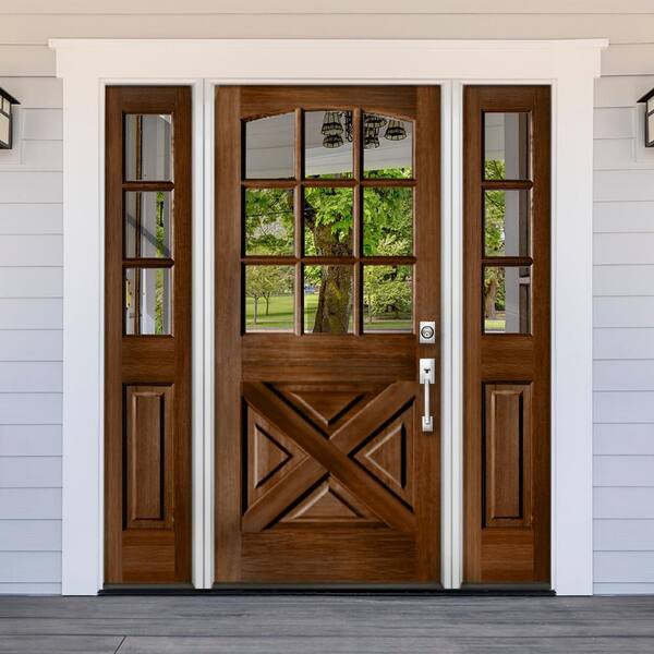 64 in. x 80 in. Farmhouse X Panel LH 1/2 Lite Clear Glass Black Stain Hemlock Prehung Front Door with DSL