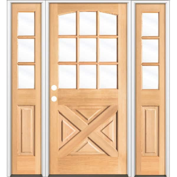 64 in. x 80 in. Farmhouse X Panel RH 1/2 Lite Clear Glass Clear Stain Hemlock Prehung Front Door with DSL