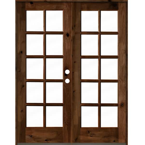 64 in. x 80 in. French Knotty Alder Wood 10-Lite Clear Glass provincial stain Left Active Double Prehung Front Door