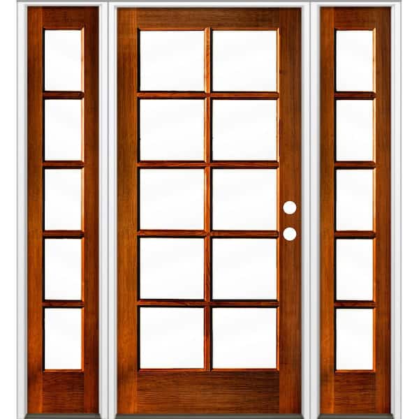 64 in. x 80 in. French LH Full Lite Clear Glass Red Chestnut Stain Hemlock Prehung Front Door with DSL
