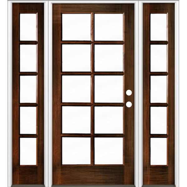 64 in. x 80 in. French LH Full Lite Clear Glass Red Mahogany Stain Hemlock Prehung Front Door with DSL