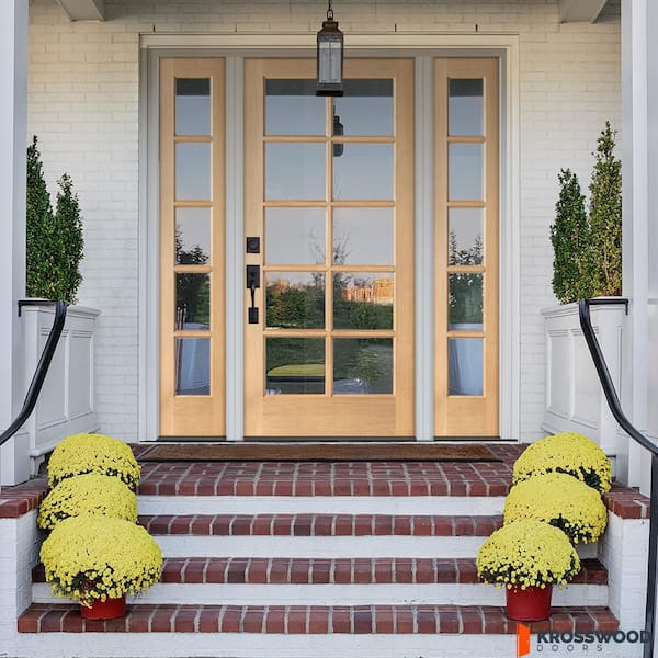 64 in. x 80 in. French RH Full Lite Clear Glass Natural Stain Hemlock Prehung Front Door with DSL