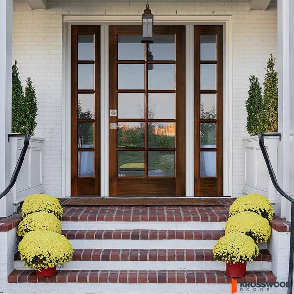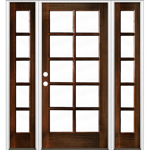 64 in. x 80 in. French RH Full Lite Clear Glass Red Mahogany Stain Hemlock Prehung Front Door with DSL