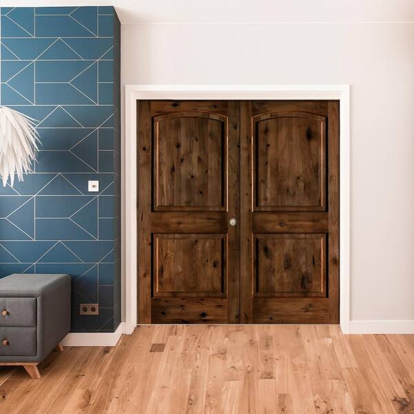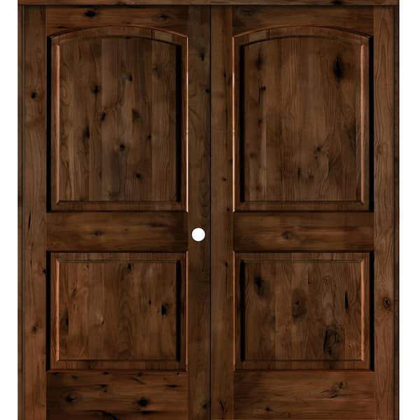 64 in. x 80 in. Knotty Alder 2 Panel Left Handed Provincial Stain Wood Double Prehung Interior Door