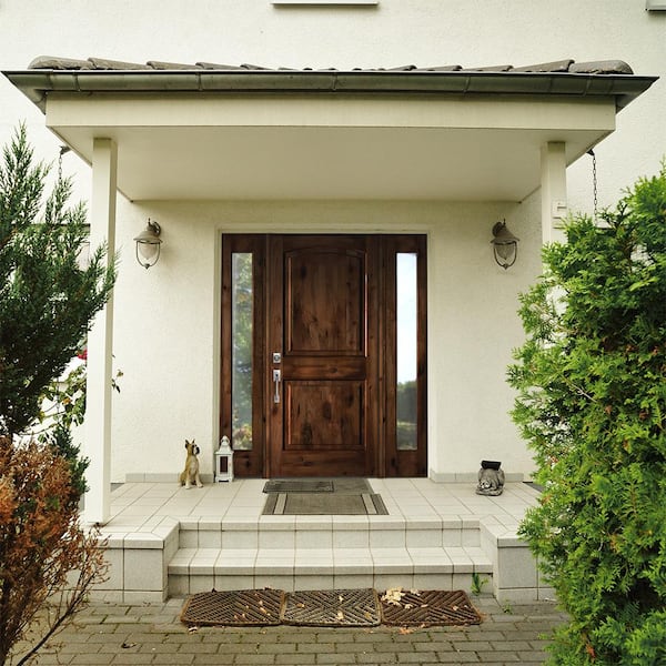 64 in. x 80 in. Knotty Alder 2 Panel Right-Hand/Inswing Clear Glass Grey Stain Wood Prehung Front Door with Sidelites