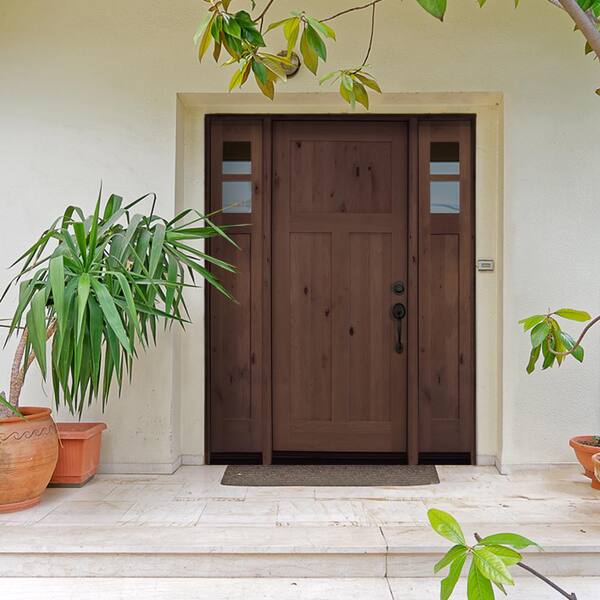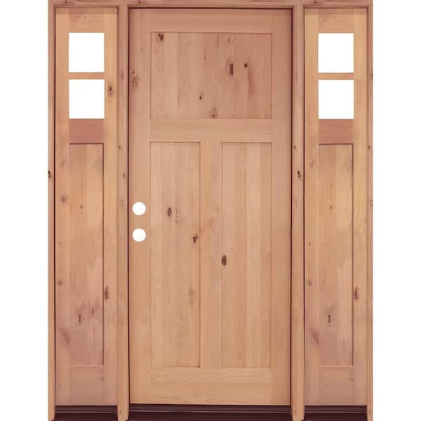 64 in. x 80 in. Knotty Alder 3 Panel Right-Hand/Inswing Clear Glass Unfinished Wood Prehung Front Door with Sidelites