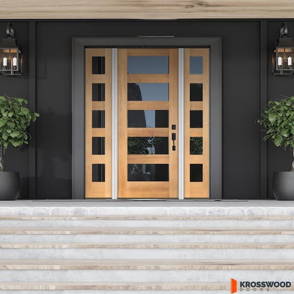64 in. x 80 in. Modern Hemlock Left-Hand/Inswing 5-Lite Clear Glass Clear Stain Wood Prehung Front Door with Sidelites
