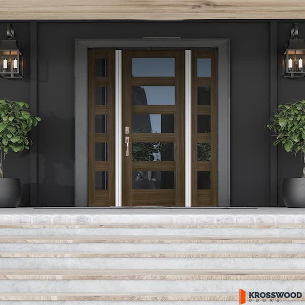 64 in. x 80 in. Modern Hemlock Right-Hand/Inswing 5-Lite Clear Glass Black Stain Wood Prehung Front Door w/Sidelites
