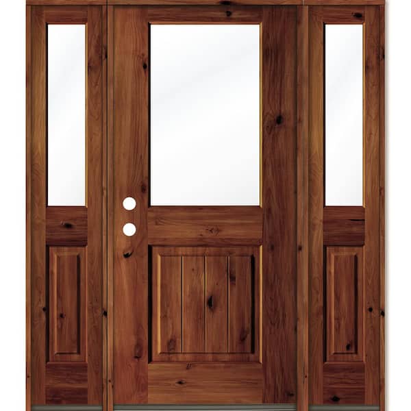 64 in. x 80 in. Rustic Alder Wood Clear Half-Lite Red Chestnut Stain w.VG Right Hand Single Prehung Front Door/Sidelites