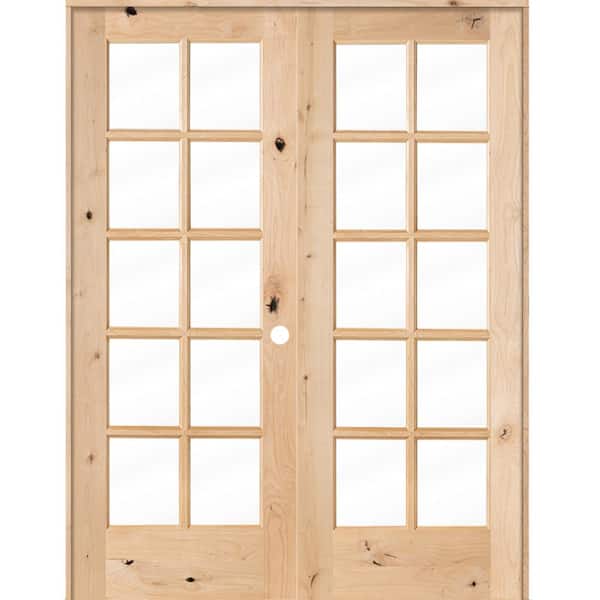 64 in. x 80 in. Rustic Knotty Alder 10-Lite Left Handed Solid Core Wood Double Prehung Interior Door