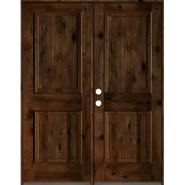 64 in. x 80 in. Rustic Knotty Alder 2-Panel Square Top Provincial Stain Right-Hand Wood Double Prehung Front Door