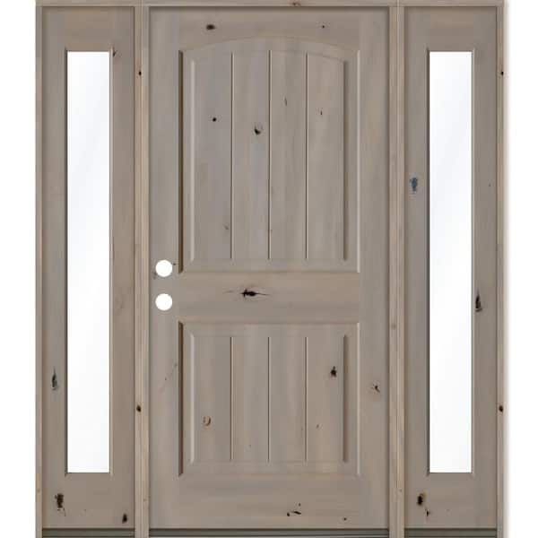 64 in. x 80 in. Rustic knotty alder Sidelite 2 Panel Left-Hand/Inswing Clear Glass Grey Stain Wood Prehung Front Door
