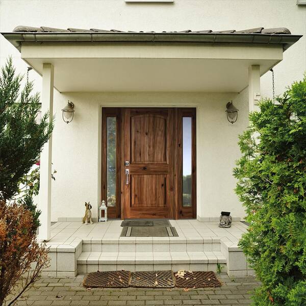 64 in. x 80 in. Rustic knotty alder Sidelite 2 Panel Right-Hand/Inswing Clear Glass Black Stain Wood Prehung Front Door