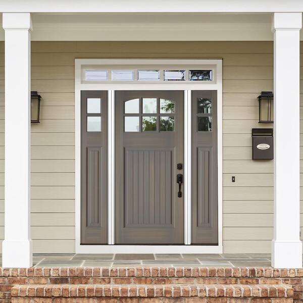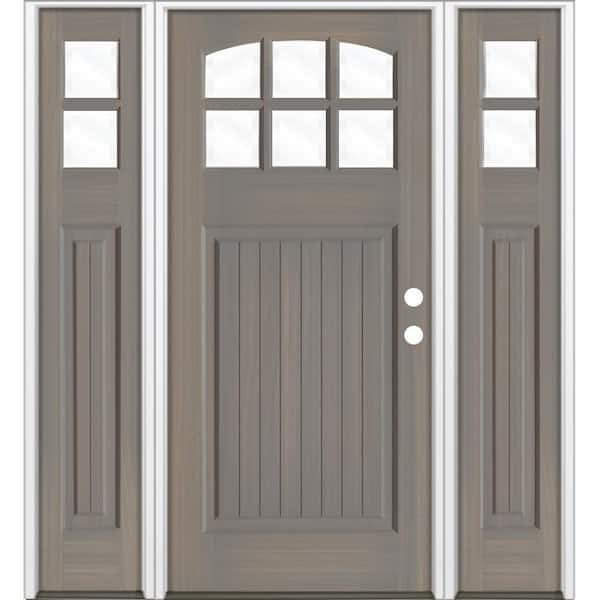 64 in. x 80 in. V-Groove Arched 6-Lite Clear Glass Grey Stain Left Hand Hemlock Prehung Front Door with DSL