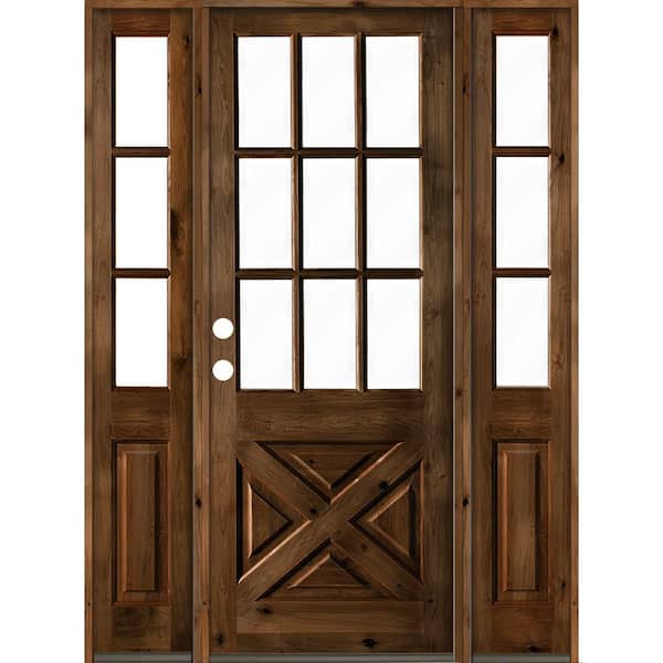 64 in. x 96 in. Alder 2 Panel Right-Hand/Inswing Clear Glass Provincial Stain Wood Prehung Front Door w/Double Sidelite
