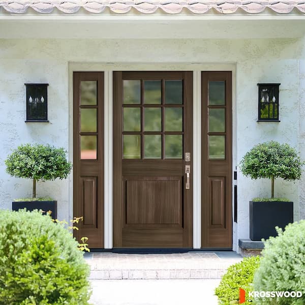 64 in. x 96 in. Farmhouse 9-Lite Clear Glass Left Hand Black Stain Hemlock Wood Prehung Front Door w/ DSL