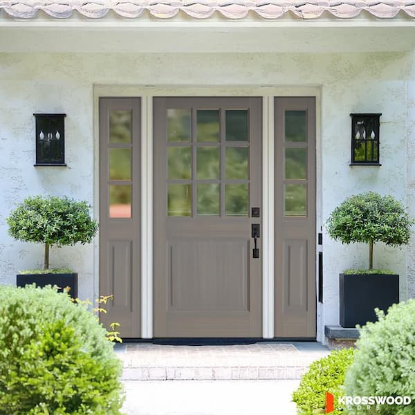 64 in. x 96 in. Farmhouse 9-Lite Clear Glass Left Hand Grey Stain Hemlock Wood Prehung Front Door w/ DSL