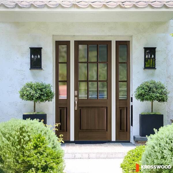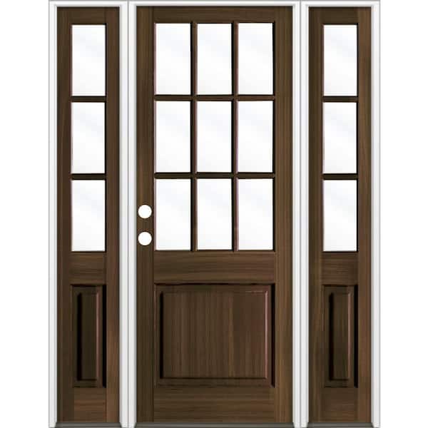 64 in. x 96 in. Farmhouse 9-Lite Clear Glass Right Hand Black Stain Hemlock Wood Prehung Front Door w/ DSL