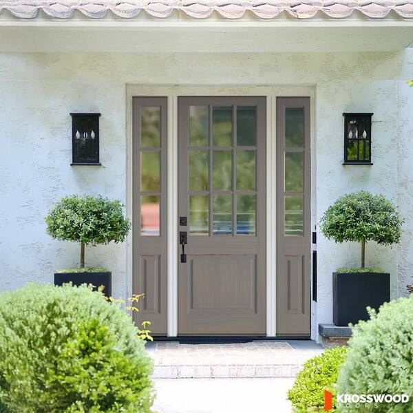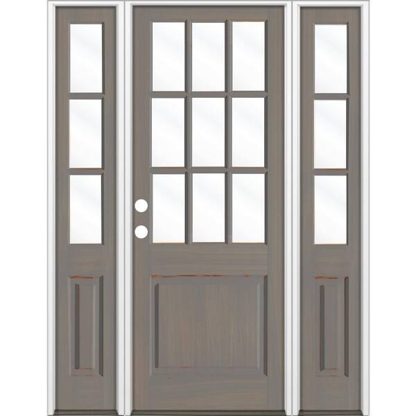 64 in. x 96 in. Farmhouse 9-Lite Clear Glass Right Hand Grey Stain Hemlock Wood Prehung Front Door w/ DSL