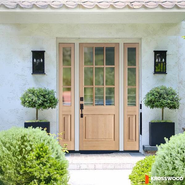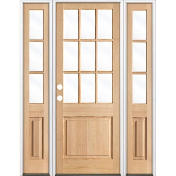 64 in. x 96 in. Farmhouse 9-Lite Clear Glass Right Hand Unfinished Hemlock Wood Prehung Front Door w/ DSL