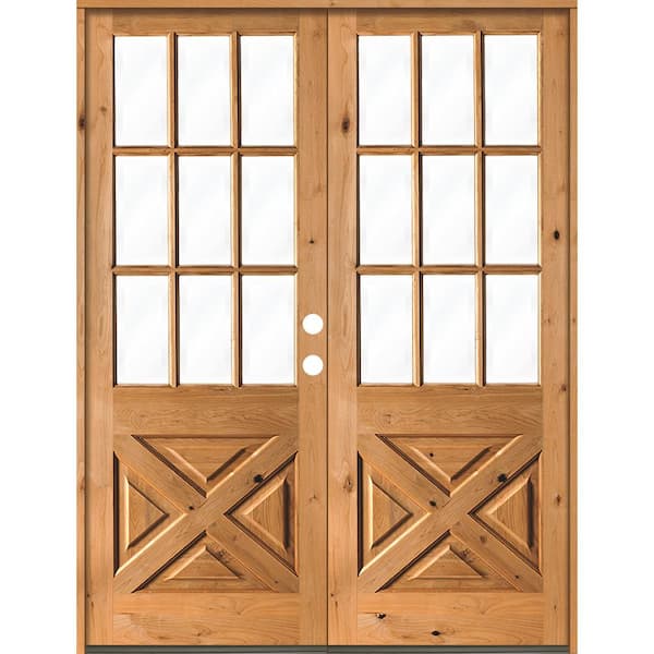 64 in. x 96 in. Knotty Alder 2-Panel Left-Hand/Inswing 1/2 Lite Clear Glass Clear Stain Double Wood Prehung Front Door