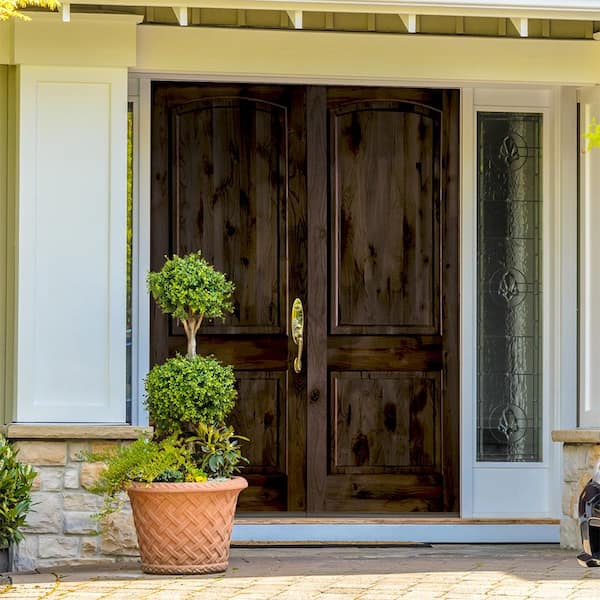 64 in. x 96 in. Knotty Alder 2 Panel Left-Hand/Inswing Grey Stain Double Wood Prehung Front Door