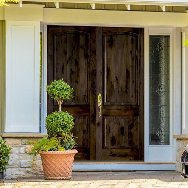 64 in. x 96 in. Knotty Alder 2 Panel Right-Hand/Inswing Black Stain Double Wood Prehung Front Door