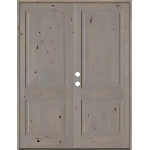 64 in. x 96 in. Knotty Alder 2 Panel Right-Hand/Inswing Grey Stain Double Wood Prehung Front Door