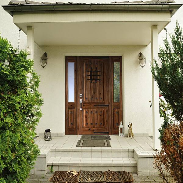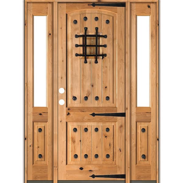 64 in. x 96 in. Mediterranean Knotty Alder Right-Hand/Inswing Clear Glass Clear Stain Wood Prehung Front Door w/DHSL