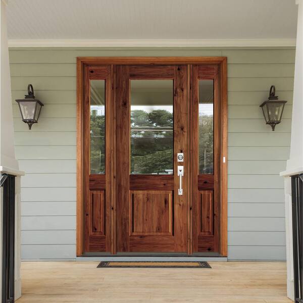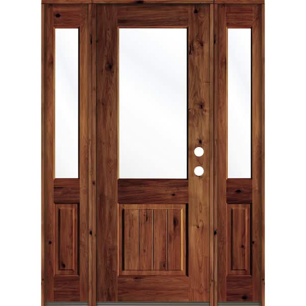 64 in. x 96 in. Rustic Alder Wood Clear Half-Lite Red Chestnut Stain w.VG Left Hand Single Prehung Front Door/Sidelites