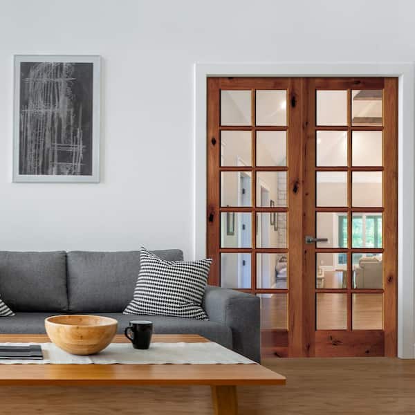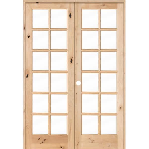 64 in. x 96 in. Rustic Knotty Alder 12-Lite Low E Glass Right Handed Solid Core Wood Double Prehung Interior Door