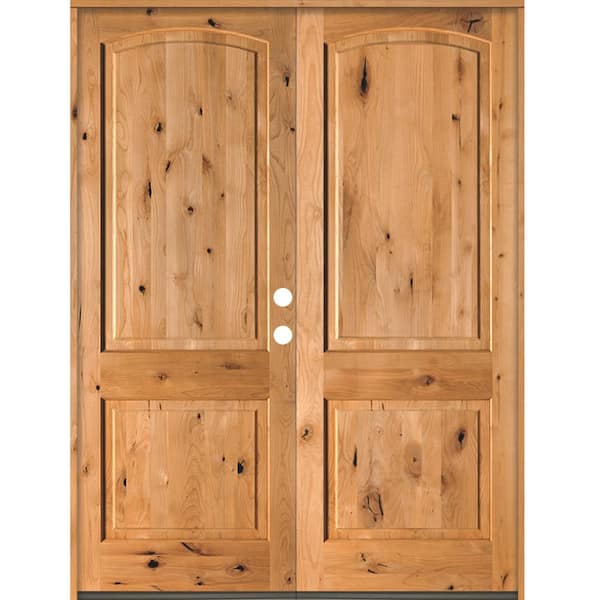 64 in. x 96 in. Rustic Knotty Alder 2-Panel Arch Top Clear Stain Left-Hand Inswing Wood Double Prehung Front Door