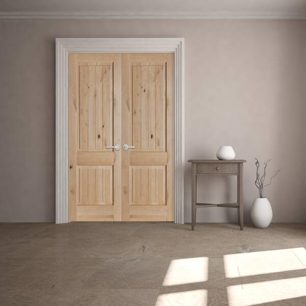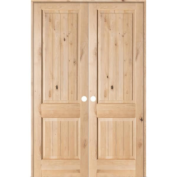 64 in. x 96 in. Rustic Knotty Alder 2-Panel Sq-Top/VG Both Active Solid Core Wood Double Prehung Interior French Door