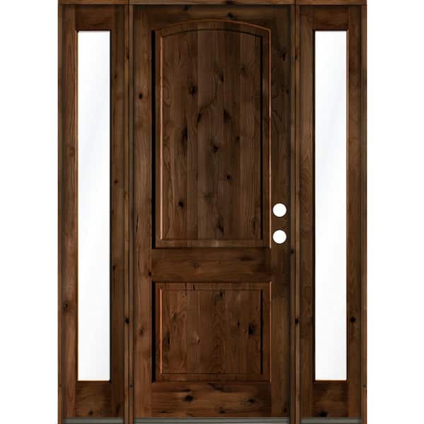 64 in. x 96 in. Rustic Knotty Alder Arch Provincial Stained Wood Left Hand Single Prehung Front Door