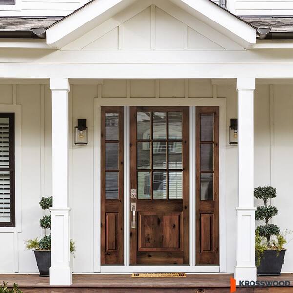 64 in. x 96 in. Rustic Knotty Alder Clear 9-Lite Red Mahogony Stain Wood Right Hand Single Prehung Front Door/Sidelites