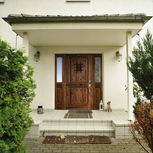 70 in. x 80 in. Mediterranean Knotty Alder Left-Hand/Inswing Clear Glass Clear Stain Wood Prehung Front Door w/DHSL