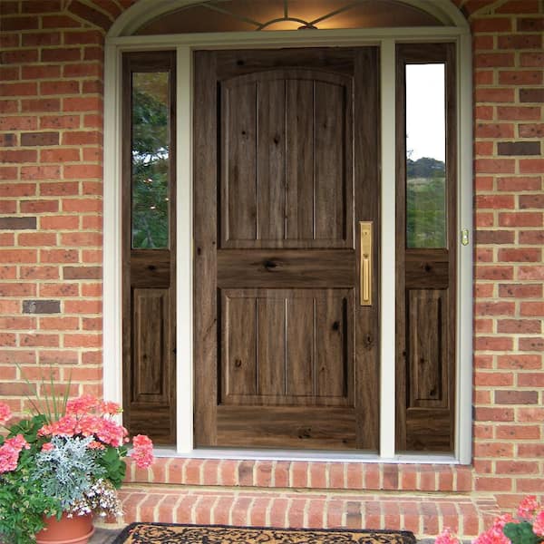 70 in. x 80 in. Rustic knotty alder 2 Panel Left-Hand/Inswing Clear Glass Grey Stain Wood Prehung Front Door with DHSL