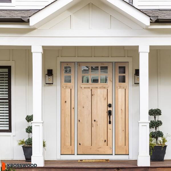 70 in. x 96 in. Knotty Alder Left-Hand/Inswing 6 Lite Beveled Clear Glass Unfinished Wood Prehung Front Door w/ DSL DS