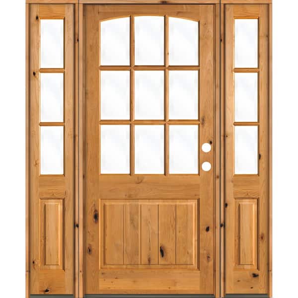 70 in. x 96 in. Knotty Alder Left-Hand/Inswing 9-Lite Clear Glass Clear Stain Wood Prehung Front Door with Sidelites