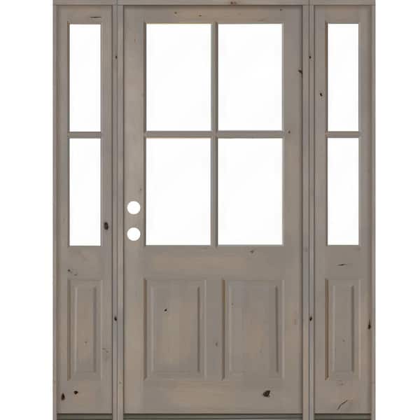 70 in. x 96 in. Knotty Alder Right-Hand/Inswing 4-Lite Clear Glass Grey Stain Wood Prehung Front Door/Double Sidelite