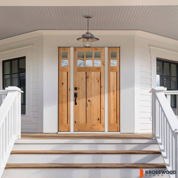 70 in. x 96 in. Knotty Alder Right-Hand/Inswing 6 Lite Beveled Clear Glass Cedar Stain Wood Prehung Front Door with DSL