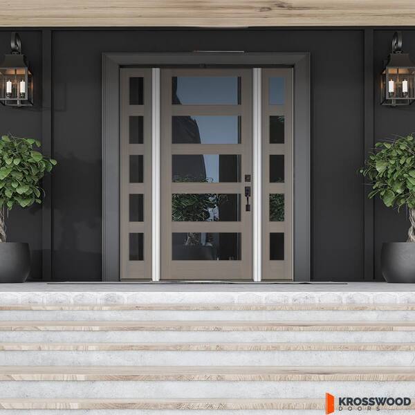 70 in. x 96 in. Modern Hemlock Left-Hand/Inswing 5-Lite Clear Glass Grey Stain Wood Prehung Front Door with Sidelites