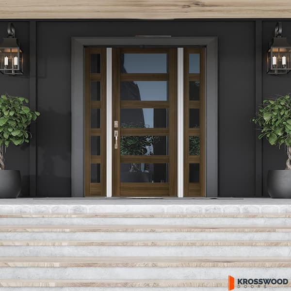 70 in. x 96 in. Modern Hemlock Right-Hand/Inswing 5-Lite Clear Glass Black Stain Wood Prehung Front Door w/Sidelites