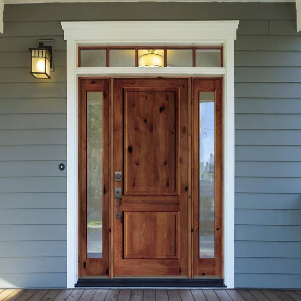 70 in. x 96 in. Rustic Alder Sq-Top Provincial Stained Wood Right Hand Single Prehung Front Door
