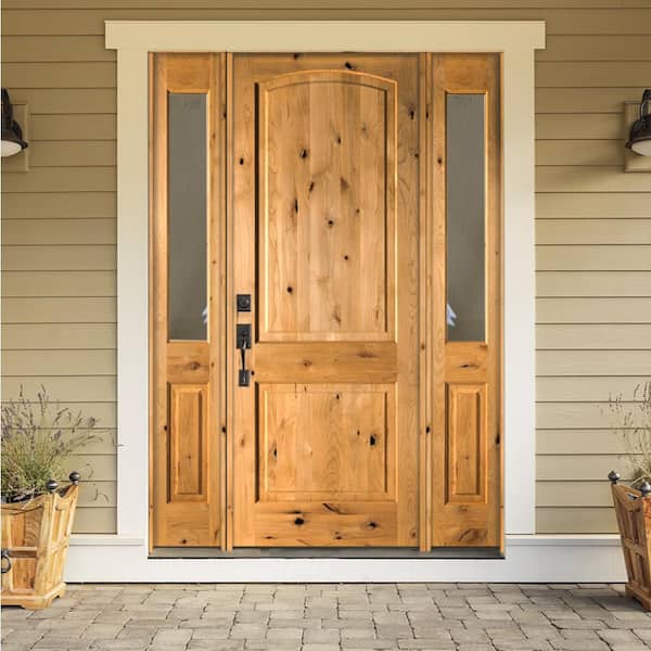70 in. x 96 in. Rustic Knotty Alder Arch Top RM Stained Wood Right Hand Single Prehung Front Door