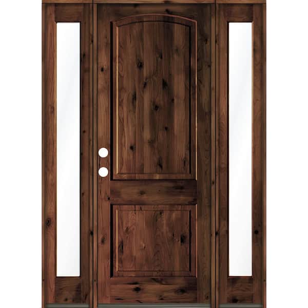 70 in. x 96 in. Rustic Knotty Alder Arch Top Red Mahogany Stained Wood Right Hand Single Prehung Front Door