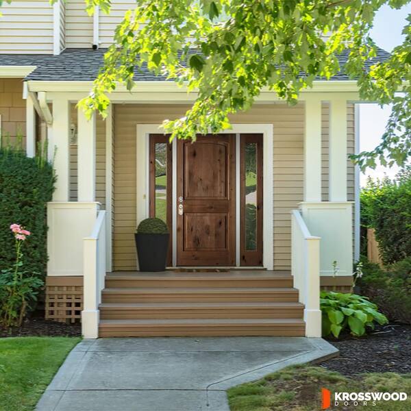 70 x 96 in. Knotty Alder 2-Panel Arch-Top Right-Hand/Inswing Clear Glass True Black Stain Wood Prehung Front Door DFSL