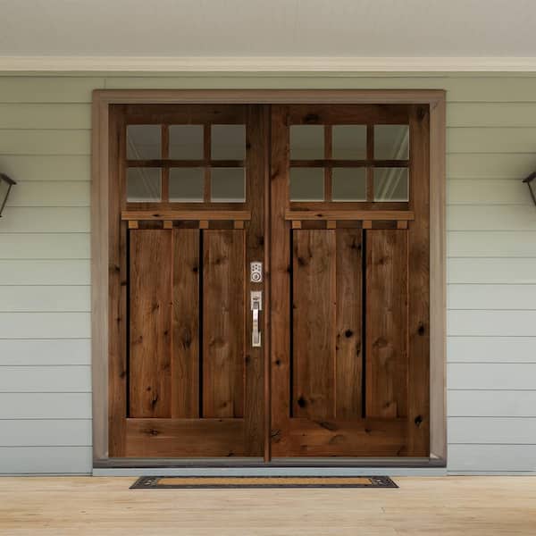 72 in. x 80 in. Craftsman Knotty Alder Wood Clear 6-Lite Provincial Stained Left Active Double Prehung Front Door