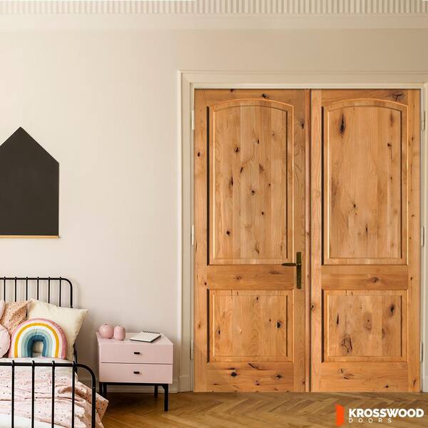 72 in. x 96 in. Rustic 2-Panel Arch Top Left Active Cedar Stain Knotty Alder Wood Double Prehung Interior Door